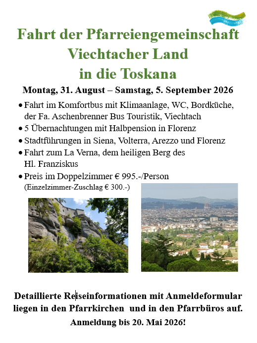 Herzlich begrüße ich Sie auf der Startseite der Homepage unserer Pfarreiengemeinschaft Viechtach-Prackenbach-Moosbach. Sicherlich ist Ihnen das Logo aufgefallen, das über dem Namen „Pfarreiengemeinschaft Viechtacher Land“ steht. Sie sehen zwei wellenartige Farbbänder, die sich aneinander schmiegen. Sie symbolisieren zum einen unser Viechtacher Land, in dem das helle Blau des Himmels oben und das dunkle Grün der Wälder und das Hellgrün der Wiesen unten die vorherrschenden Farbtöne sind. Zum anderen drücken sie unsere tiefste Glaubens-überzeugung aus: Himmel und Erde, Gott und Mensch sind nicht getrennt, sondern berühren sich. Mit Jesus, in dem Gott Mensch geworden ist, ist der unendlich hohe Schöpfer auf Tuchfühlung zu uns gegangen. Und umgekehrt versuchen wir Gläubige ein Leben lang uns dem Himmel entgegenzustrecken. Im Gotteslob gibt es ein neues geistliches Lied, das diese Bewegung von Gott und uns schön in Worte und Musik bringt: „Wo Menschen sich verschenken, die Liebe bedenken und neu beginnen, ganz neu, da berühren sich Himmel und Erde, dass Friede werde unter uns.“ (Gotteslob Nr. 846, 2. Strophe)