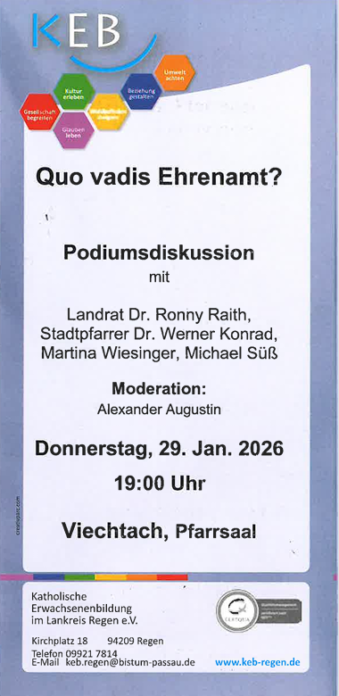 Herzlich begrüße ich Sie auf der Startseite der Homepage unserer Pfarreiengemeinschaft Viechtach-Prackenbach-Moosbach. Sicherlich ist Ihnen das Logo aufgefallen, das über dem Namen „Pfarreiengemeinschaft Viechtacher Land“ steht. Sie sehen zwei wellenartige Farbbänder, die sich aneinander schmiegen. Sie symbolisieren zum einen unser Viechtacher Land, in dem das helle Blau des Himmels oben und das dunkle Grün der Wälder und das Hellgrün der Wiesen unten die vorherrschenden Farbtöne sind. Zum anderen drücken sie unsere tiefste Glaubens-überzeugung aus: Himmel und Erde, Gott und Mensch sind nicht getrennt, sondern berühren sich. Mit Jesus, in dem Gott Mensch geworden ist, ist der unendlich hohe Schöpfer auf Tuchfühlung zu uns gegangen. Und umgekehrt versuchen wir Gläubige ein Leben lang uns dem Himmel entgegenzustrecken. Im Gotteslob gibt es ein neues geistliches Lied, das diese Bewegung von Gott und uns schön in Worte und Musik bringt: „Wo Menschen sich verschenken, die Liebe bedenken und neu beginnen, ganz neu, da berühren sich Himmel und Erde, dass Friede werde unter uns.“ (Gotteslob Nr. 846, 2. Strophe)